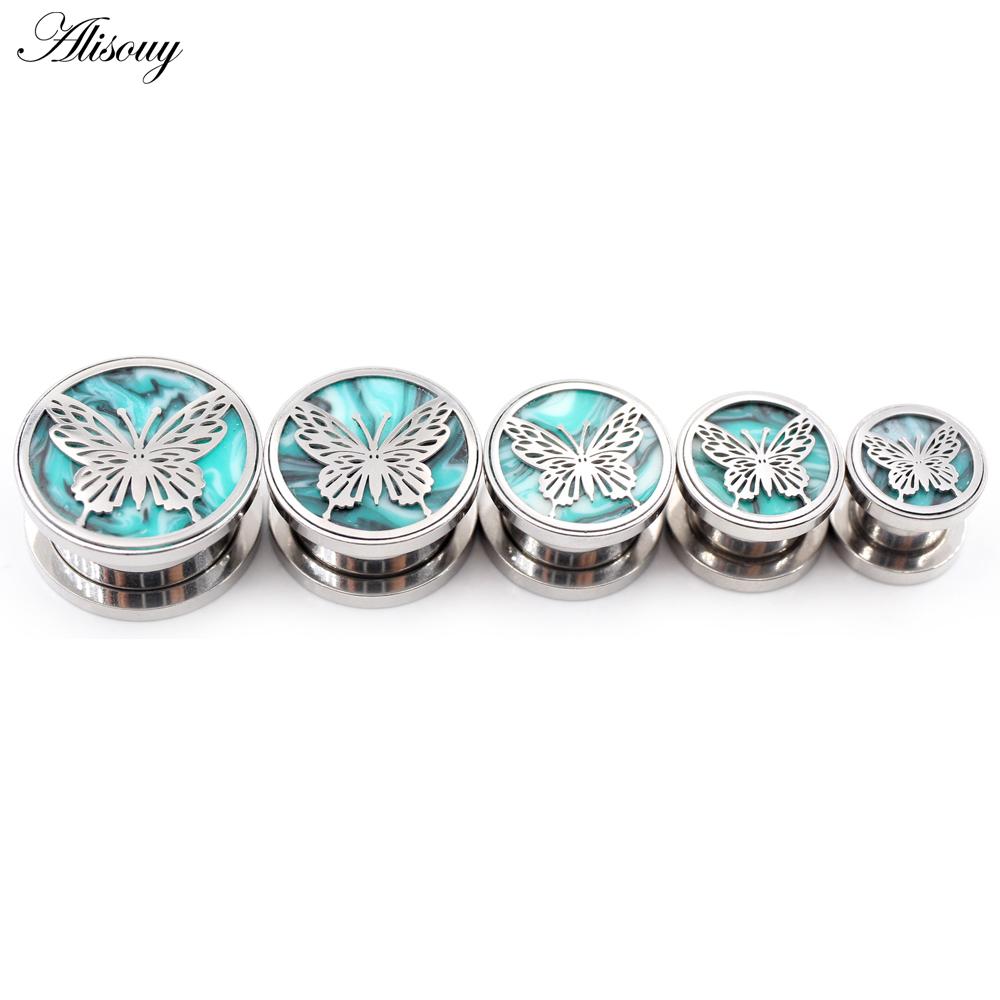 Alisouy 2PCS нержавеющая сталь бабочка зеленый камень ушные туннели заглушки расширитель растяжитель калибр серьги пирсинг украшения для тела 8mm