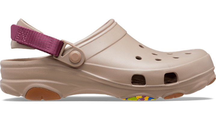 Comfort For The AdventureTravel. Exploration. Adventures near and far. The Classic All-Terrain Clog is ready for it all, even in the harshest environments. With a more rugged outsole and an adjustable turbo strap, the ground beneath your feet has never felt more surmountable. Lightweight Croslite™ construction makes them a practical and packable choice for any outing. It’s time to shift into all-wheel drive. Flip that strap back and go find your fun! All-Terrain Clog Details: Rugged lug outsoles with enhanced tread for increased traction and support Fully molded Croslite™ foam uppers Ventilation ports add breathability and help shed water Easy to clean and quick to dry Adjustable turbo heel straps for a snug, accommodating fit Customizable with Jibbitz™ charms Iconic Crocs Comfort™: Lightweight. Flexible. 360-degree comfort.