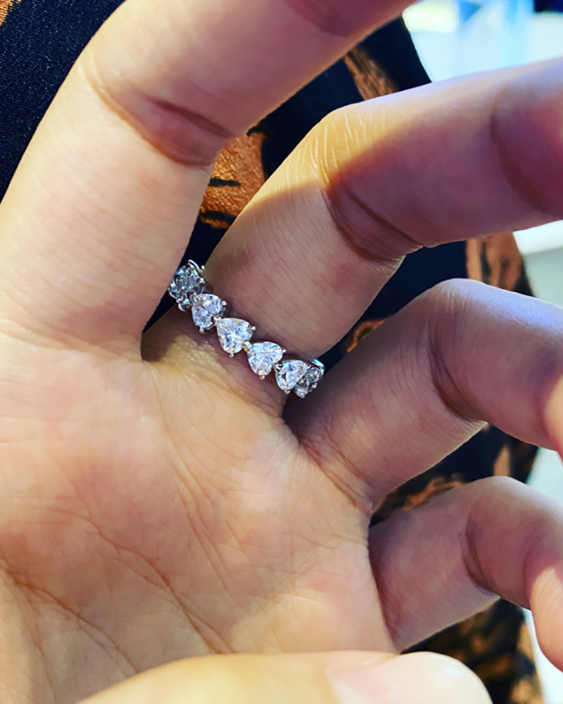 Allover Heart Shaped Rhinestone Pattern Ring, Silver