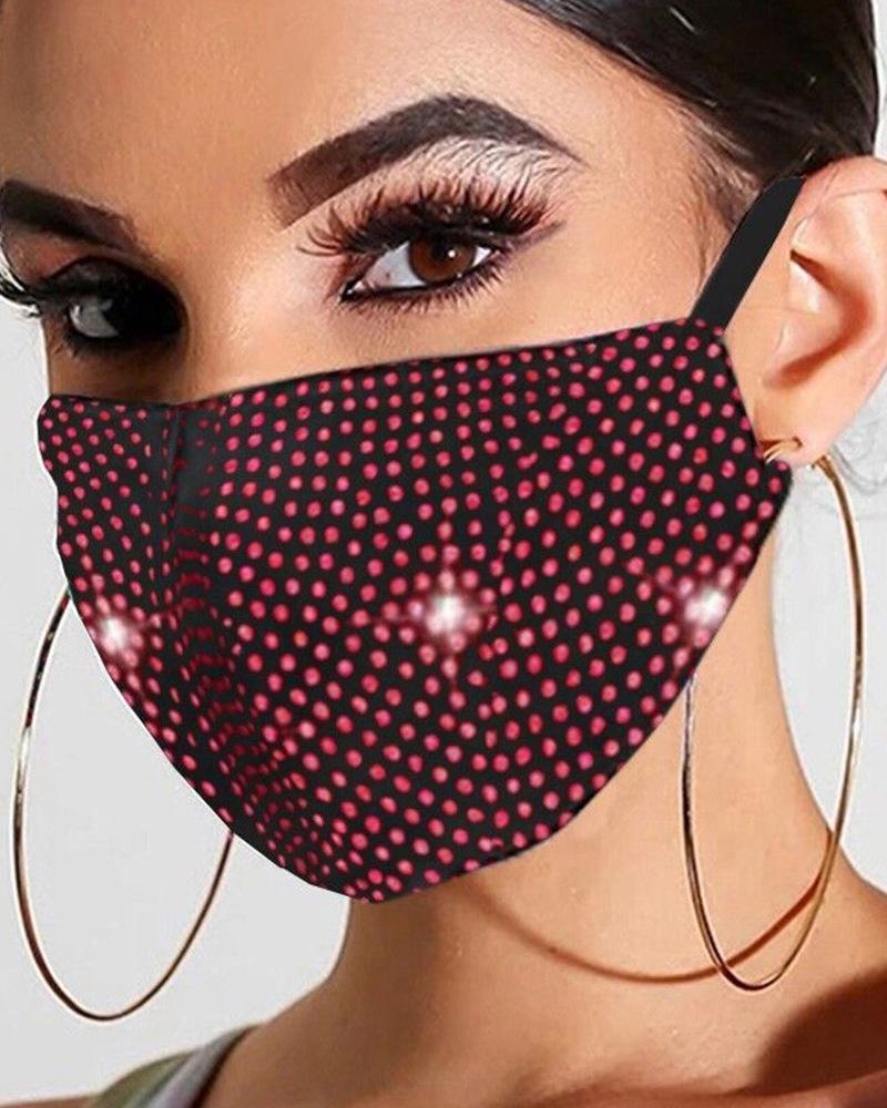 Allover Rhinestone Breathable Earloop Face Bandana, Red