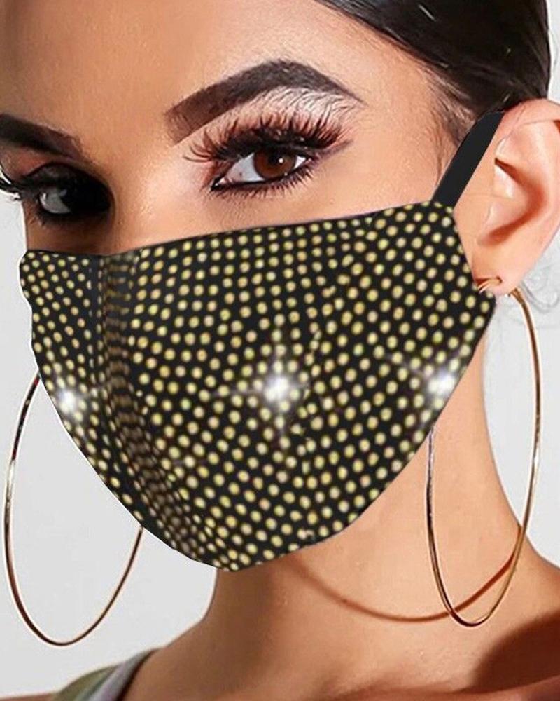 Allover Rhinestone Breathable Earloop Face Bandana, Yellow