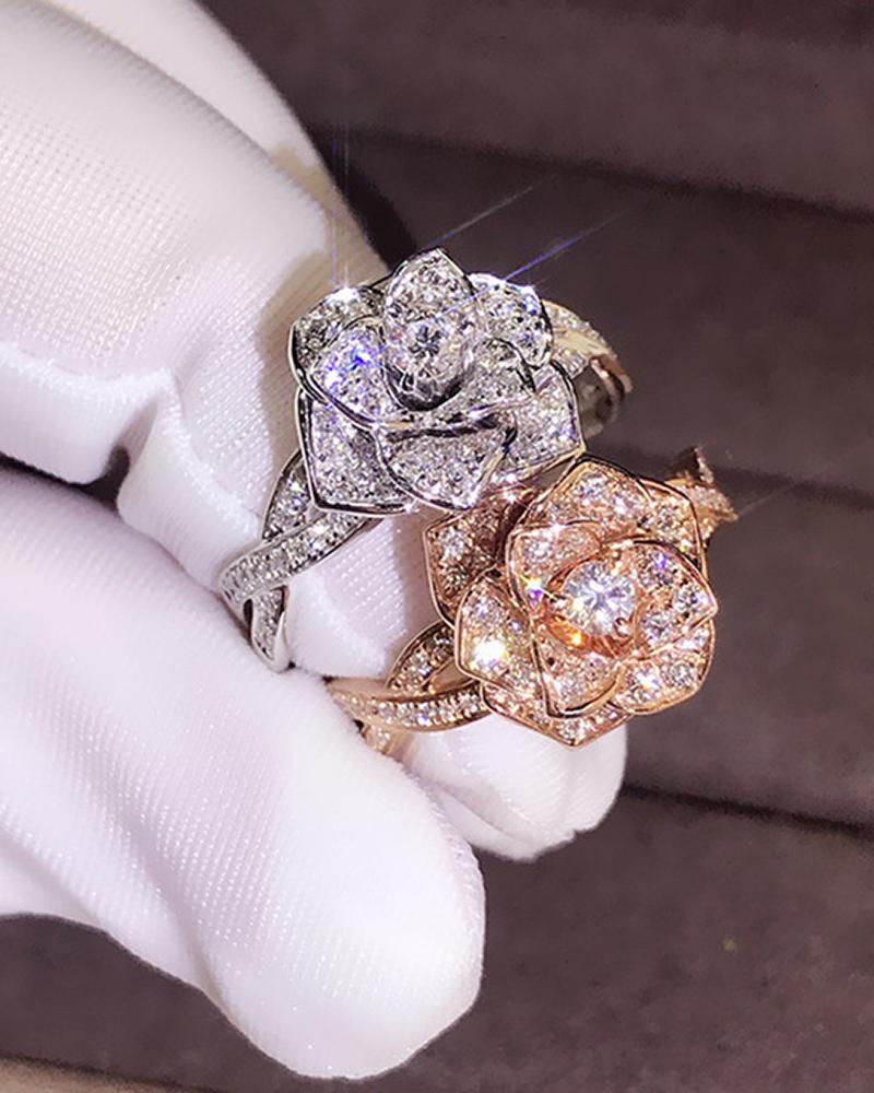 Allover Rhinestone Floral Pattern Ring, Gold