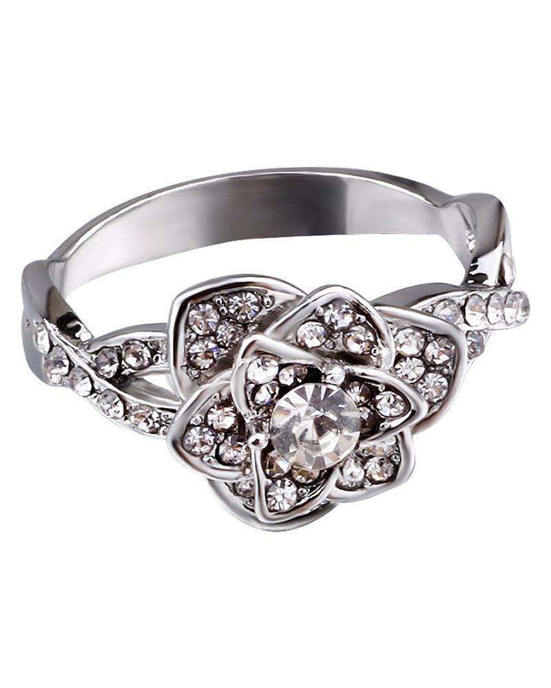 Allover Rhinestone Floral Pattern Ring, Silver