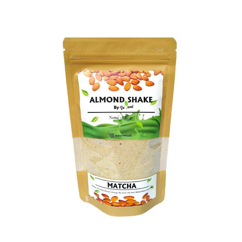 Almond shake adalah minuman serbuk yang dibuat 100%almond california dikombinasikan gandum, biji bijian moringa ( extra booster asi)