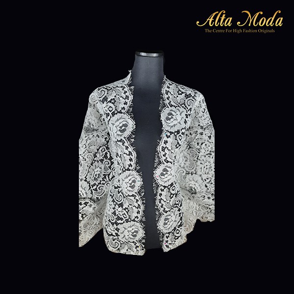 Alta Moda Brokat Chantilly Tradisional Roses Pattern Pinggiran Putih