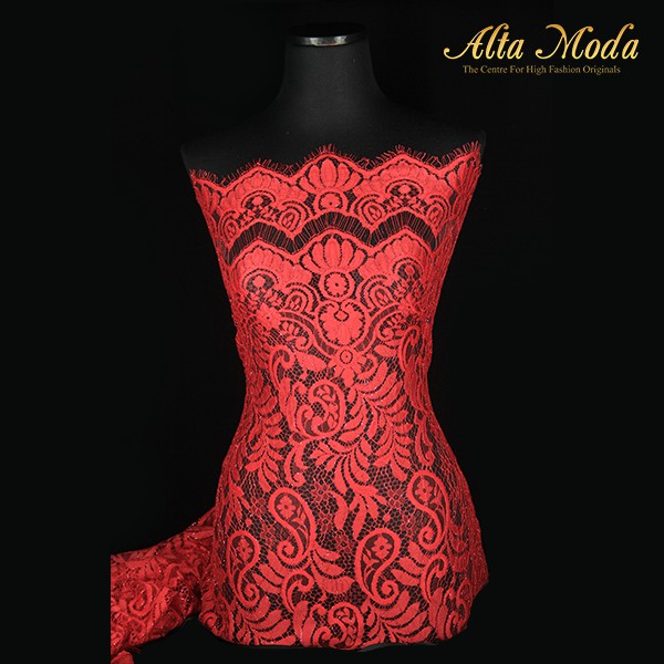 Alta Moda Brokat Semi Perancis Parsley Ranting Renda Merah (2.5M)