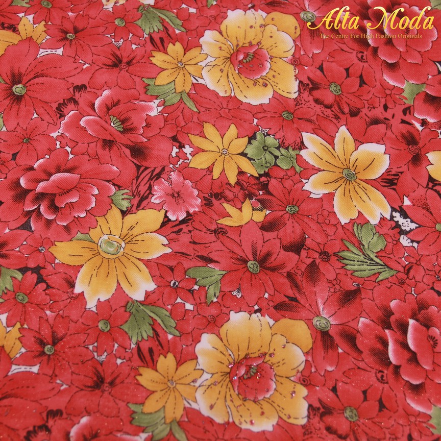 Alta Moda Georgette Full Floral Pattern Merah Mix Kuning (1M)