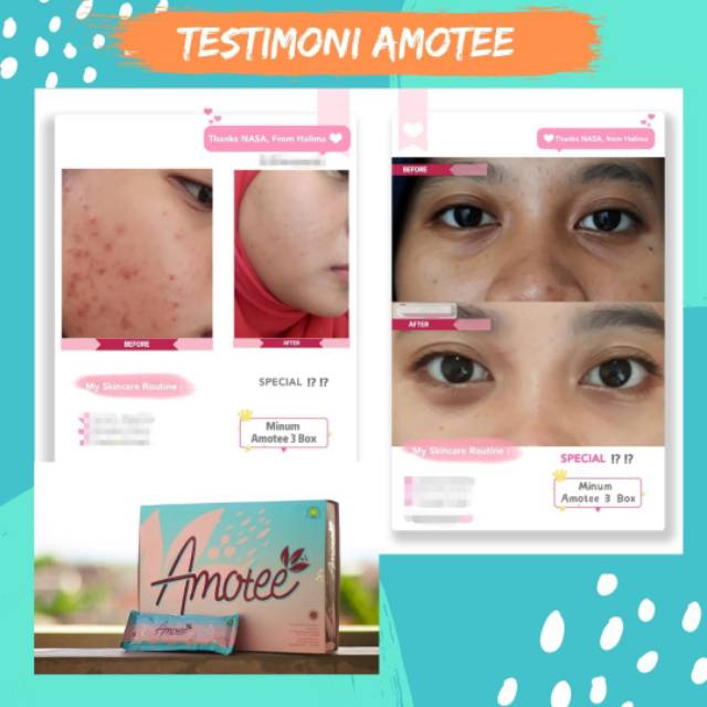 #amoteenasaAlhamdulillah habis 3 box amotee, sudah terlihat hasilnya. Bekas jerawat memudar, kulit semakin kencang dan cerah .. Terima kasih Amotee Lovers yang sudah mempercayakan Amotee untuk menjaga kesehatan kulit dari dalam.. Yuk cobain amotee sekarang.. Dan selalu share testimonimu yaa