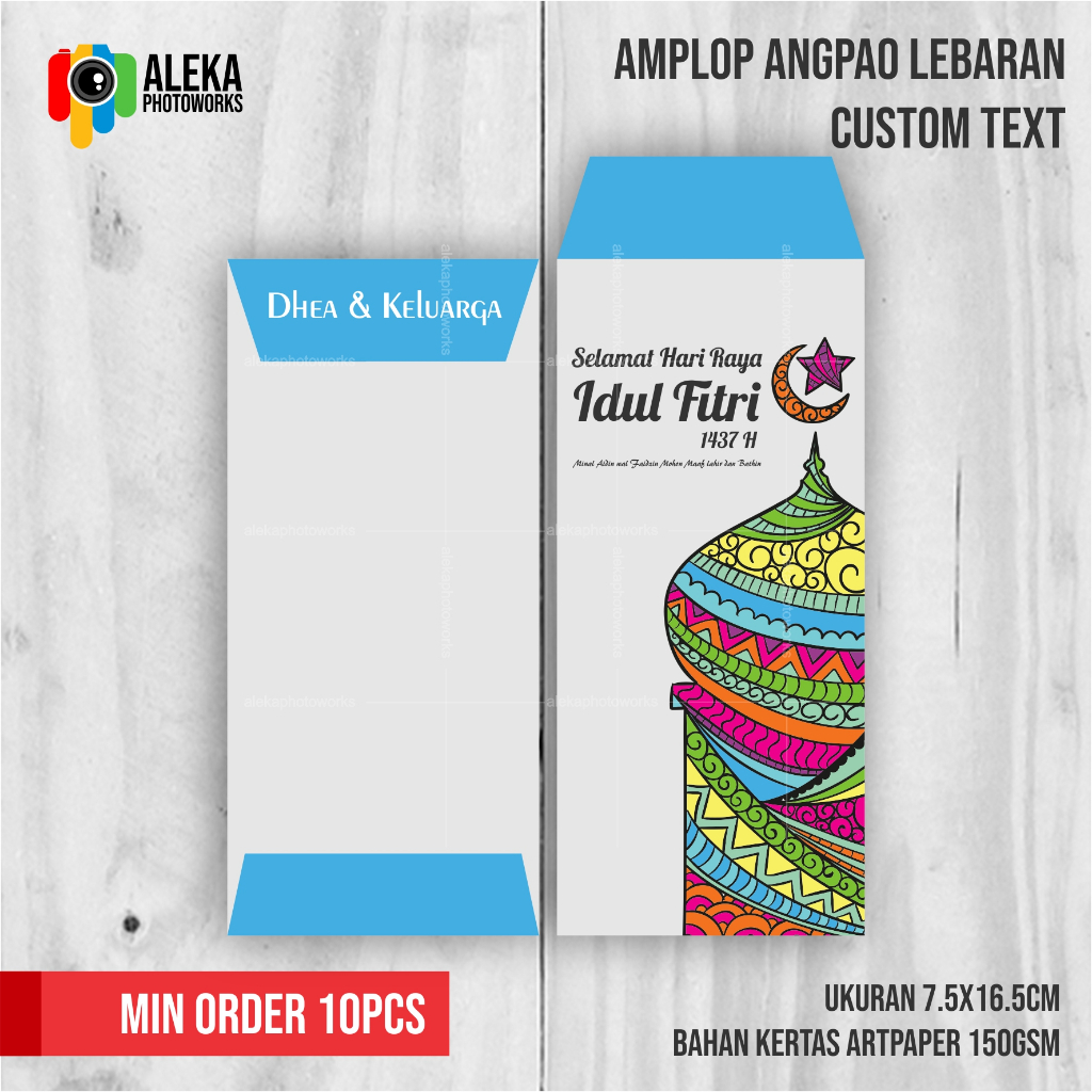 Mohon informasikan nama anda / text yang ingin dicantumkan di dalam amplop angpao lebaran kepada kami.