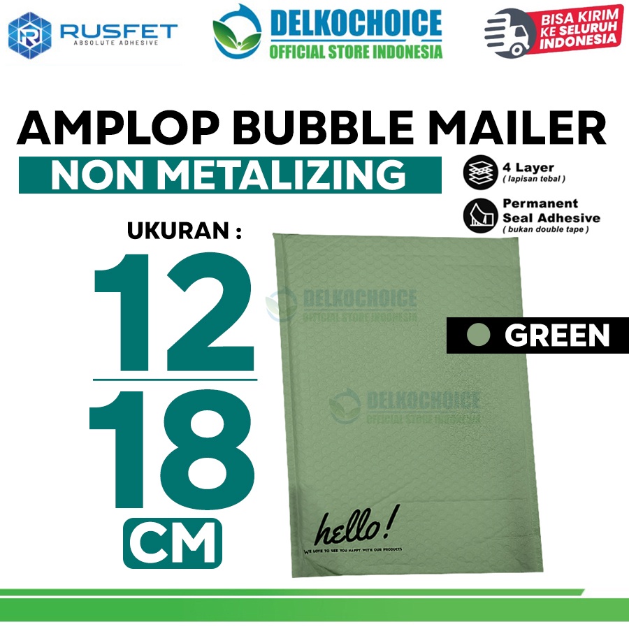 Amplop Bubble Mailer Bag Green 12x18cm Polybubble Envelope RUSFET