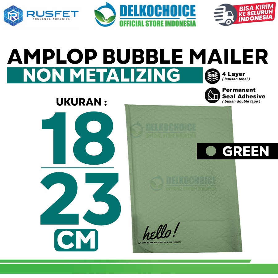 Amplop Bubble Mailer Bag Green 18x23cm Polybubble Envelope RUSFET