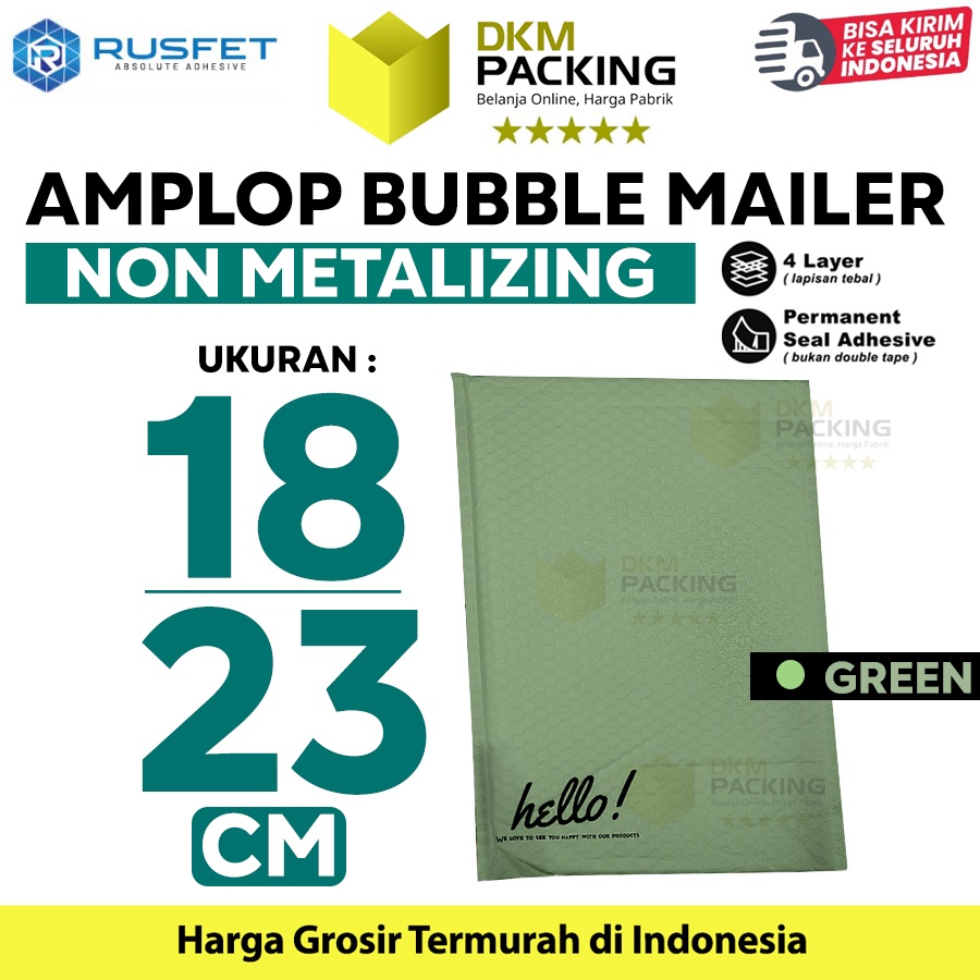 Amplop Bubble Mailer Bag Green 18x23cm Polybubble Envelope RUSFET