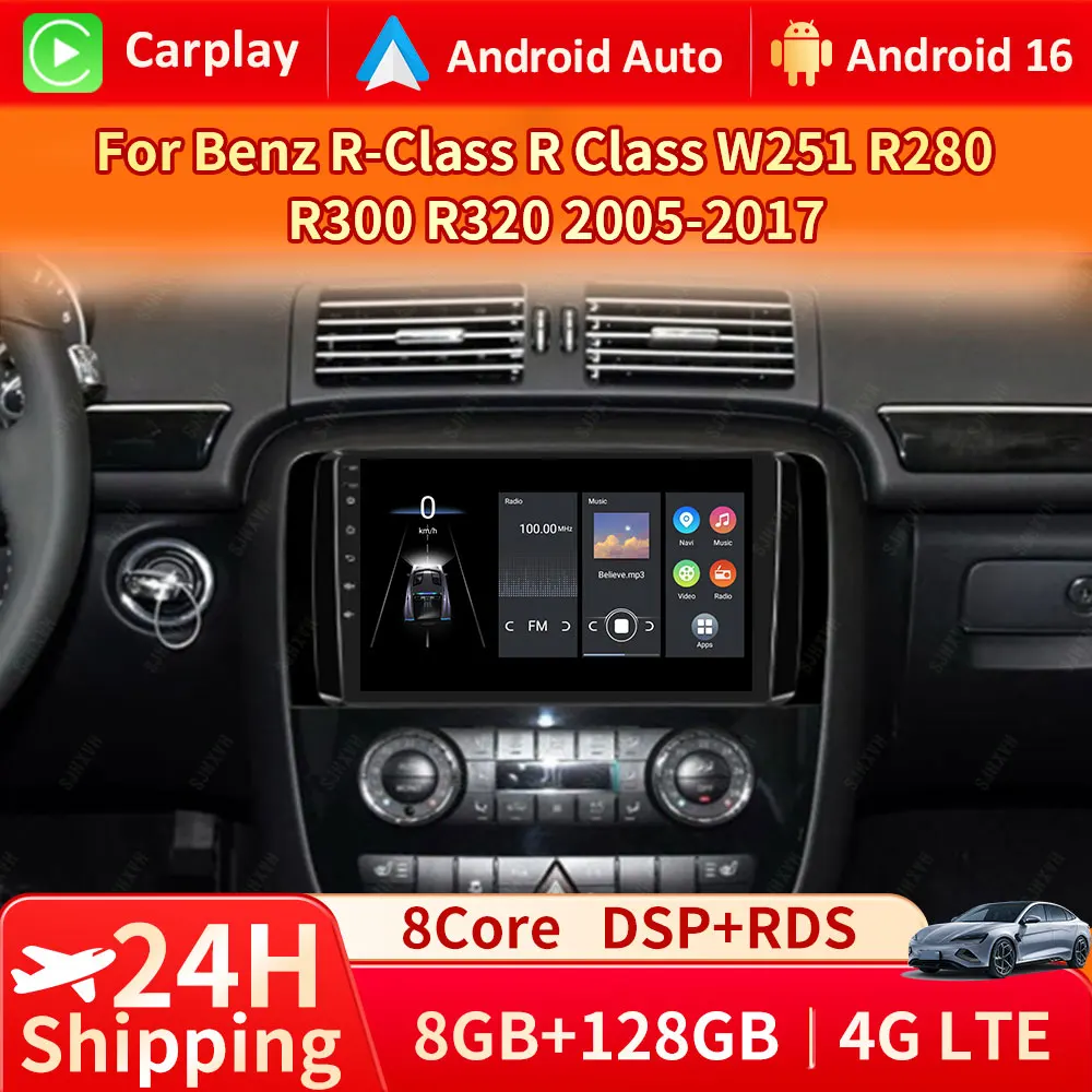 Android 16 Car Radio Carplay Multimedia GPS Player BT For Mercedes Benz R Class W251 R280 R300 R350 R320 R500 2007 - 2011