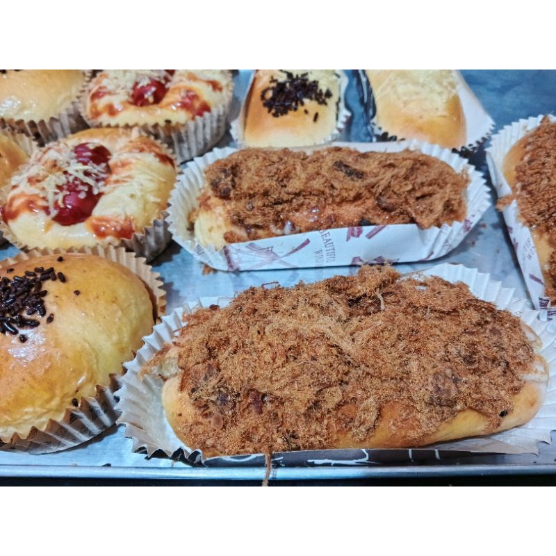 Keju, coklat keju, Abon, sosis, coklat, kacang merah , selai blueberry, coffee bun