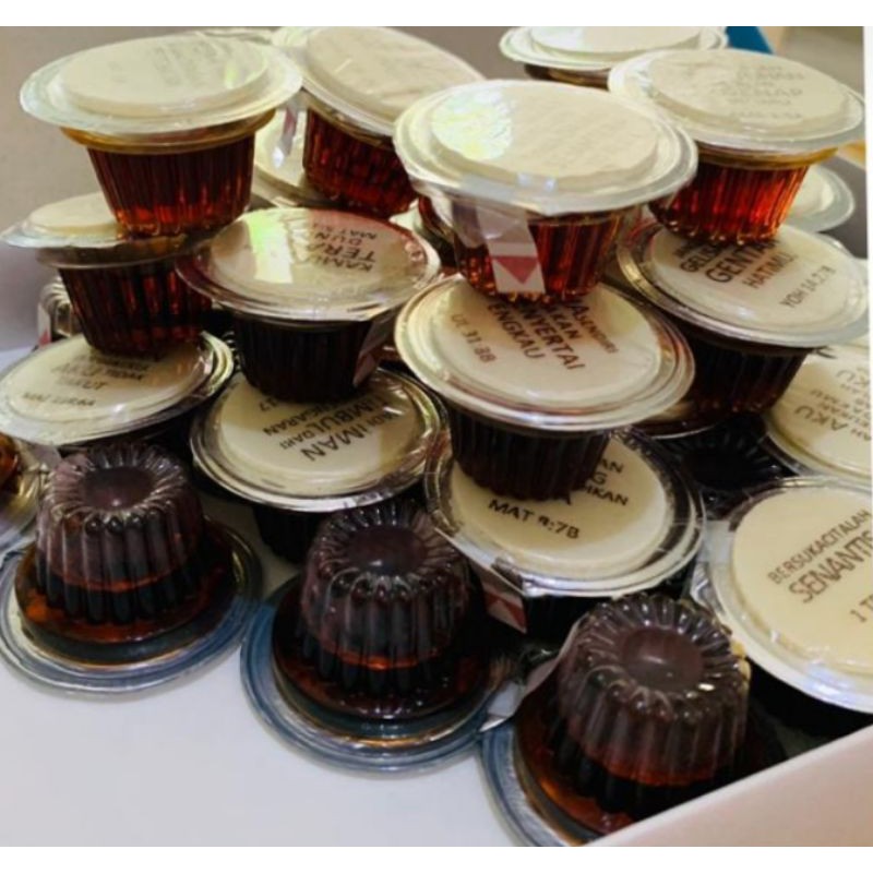 Roti Perjamuan (Hosti) rasa tawar berdiameter 3cm dgn tulisan ayat + Anggur cup yg disatukan, sehingga memudahkan saat Perjamuan Kudus,