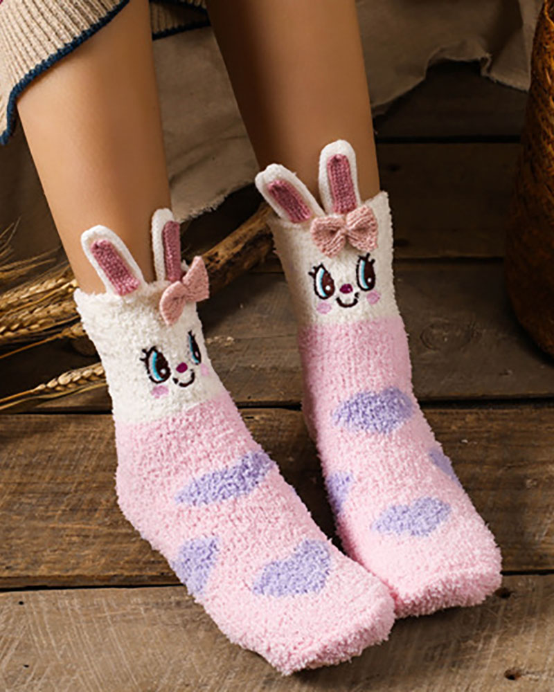 Animal Pattern Fluffy Socks, Light pink