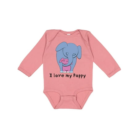 Inktastic I Love My Poppy Elephant Blue Pink Gift Baby Girl Long Sleeve Bodysuit