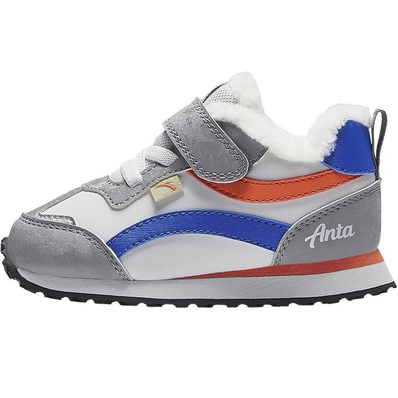 Anta Детские модные нескользящие легкие амортизирующие теплые низкие кроссовки из синтетической кожи Обувь для малышей Серо-синие A12440093-1 21