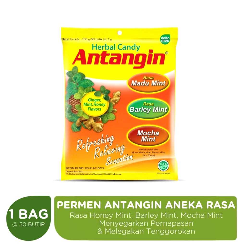 Permen Antangin adalah permen herbal dengan rasa yang menyegarkan karena terbuat dari kandungan utama ekstrak jahe dan madu. Permen ini juga memberikan efek melegakan tenggorokan dan juga pernapasan dengan sensasi mint yang menyegarkan