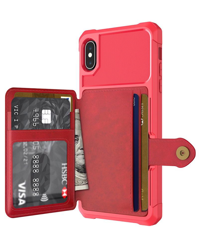 Anti-Scratch Buckle Wallet iPhone Case, Red