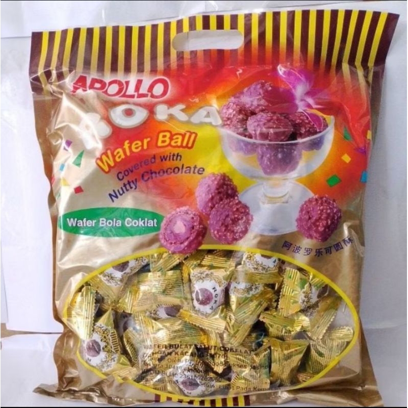 Apollo Roka Coklat isi 70 Pcs 420gr Wafer Bulat Balut Kacang