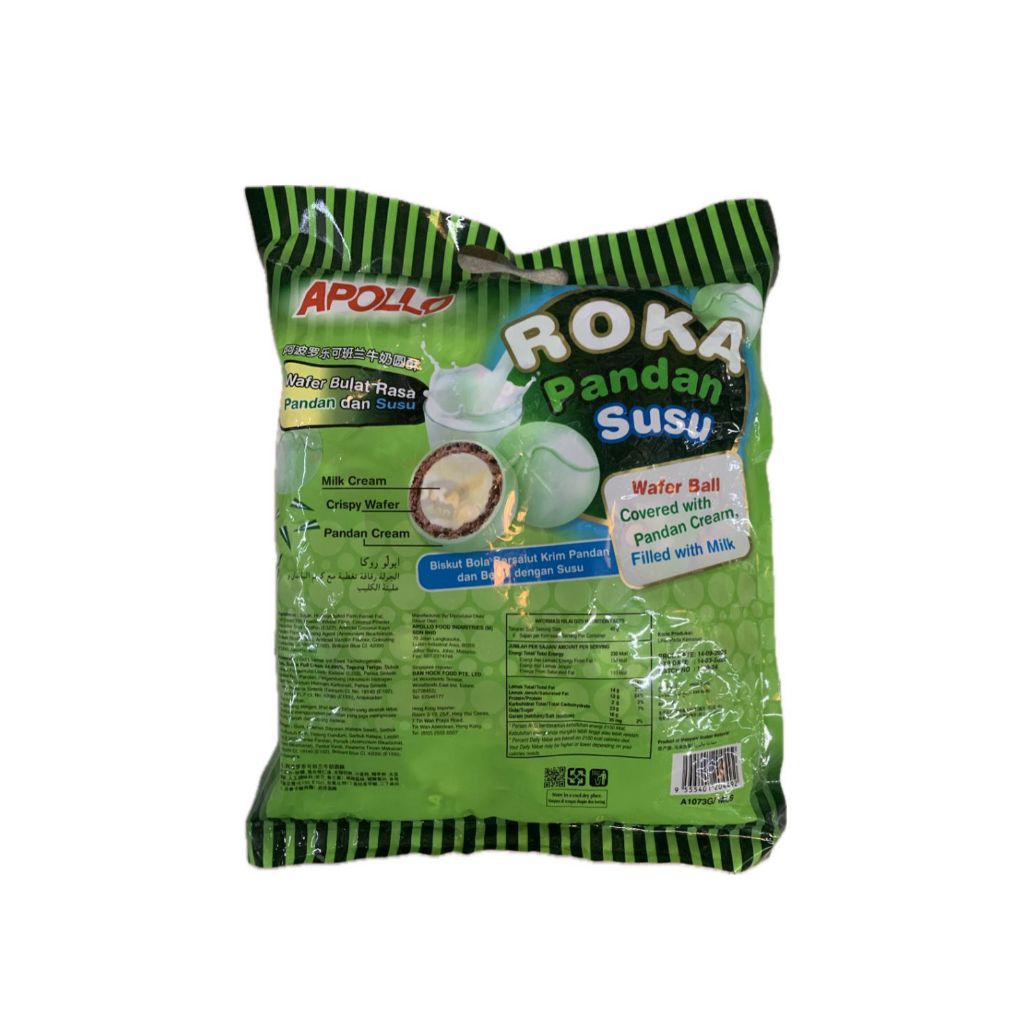 Apollo Roka adalah camilan berbentuk bola kecil yang terbuat dari wafer renyah dilapisi cokelat dan kacang. Roka ini memiliki tekstur renyah dan rasa manis yang disukai banyak orang. Camilan ini cocok dinikmati kapan saja, baik saat santai maupun berkumpul bersama teman dan keluarga.