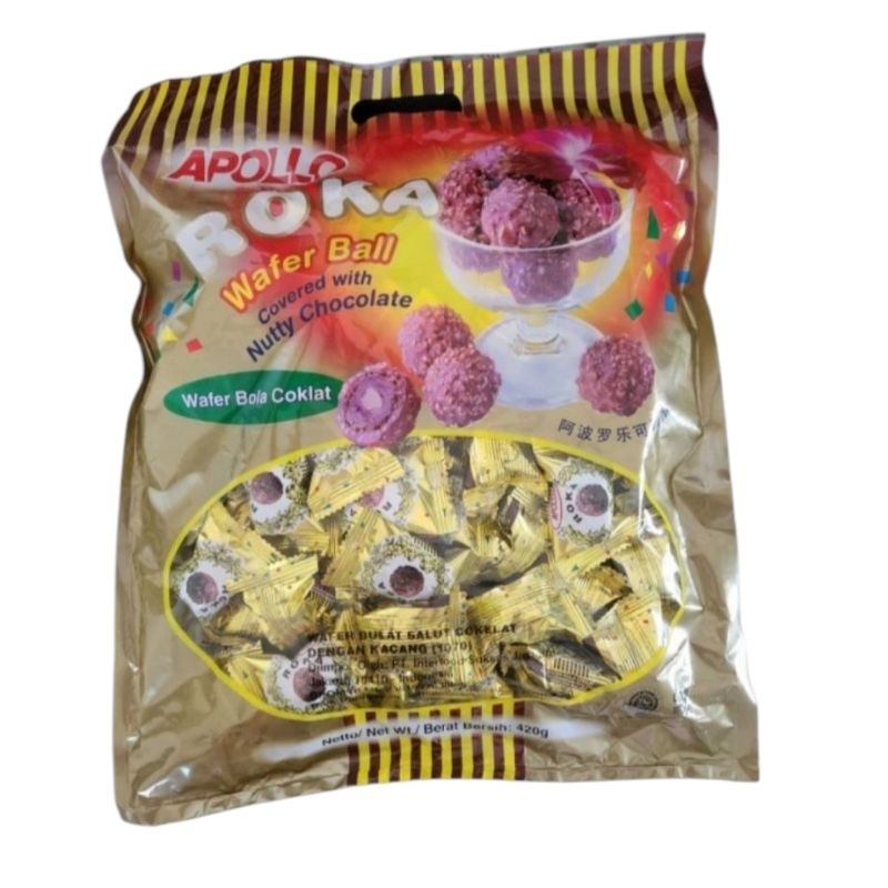 APOLLO ROKA WAFER BALL COKLAT BAG 420 gr Bola wafer berlapis Coklat dengan kacang