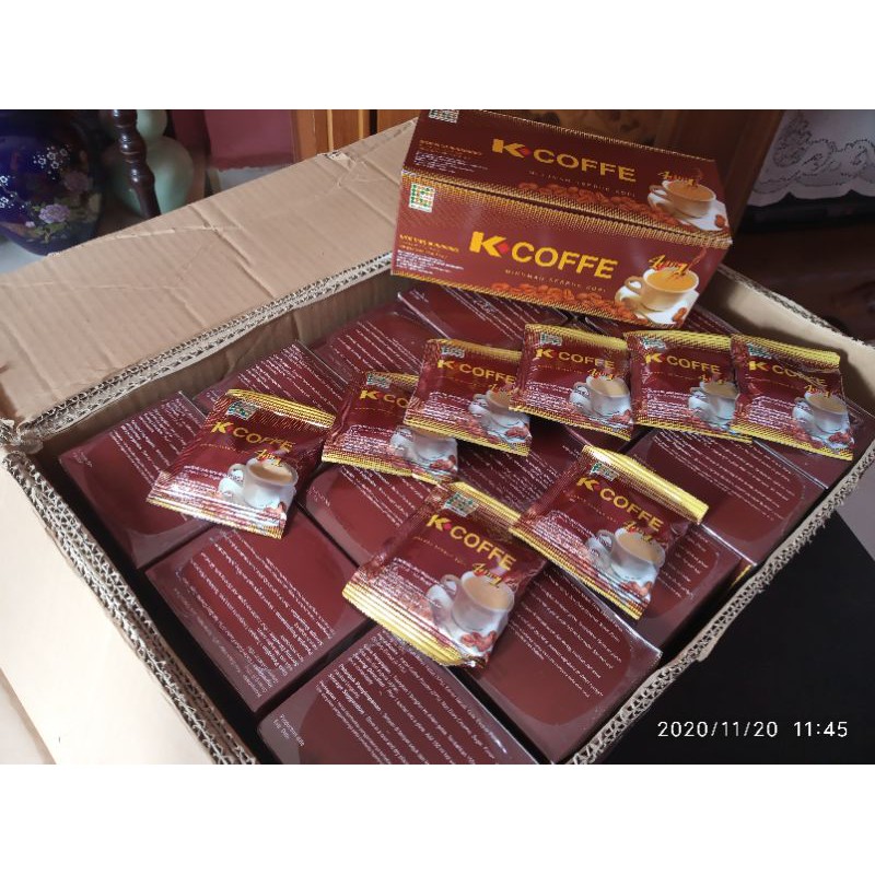 K-Coffe 4 in 1 sebagai Minuman Kesehatan Tersedia dalam kemasan sachet yang praktis dan mudah untuk disajikan. Telah dilengkapi dengan gula dan krimer yang memberikan Anda rasa yang pas dan mudah disajikan.