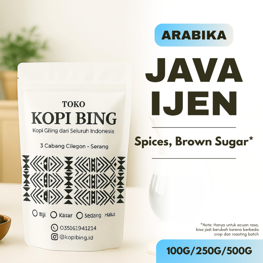 Berasal dari kawasan lereng Gunung Ijen, Jawa Timur, kopi ini ditanam di ketinggian 1.000–1.400 mdpl. Iklim tropis basah dan tanah vulkanik subur memberikan cita rasa khas yang telah dikenal sejak era kolonial sebagai kopi ekspor unggulan dari Jawa.