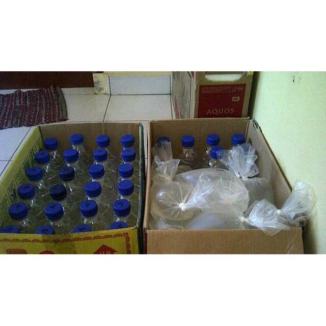 pengemasan di dalam bambu agar tidak pecah botolnya.