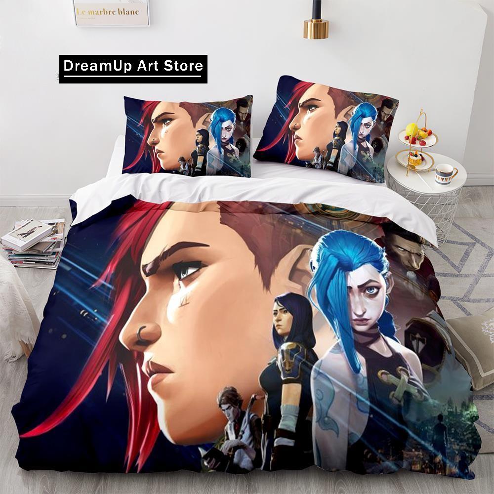 Arcane Anime Game Jinx Комплект постельного белья Милый пододеяльник Покрывало с наволочкой Twin Single Queen King Size Мальчики Взрослые Дома 155x215cm
