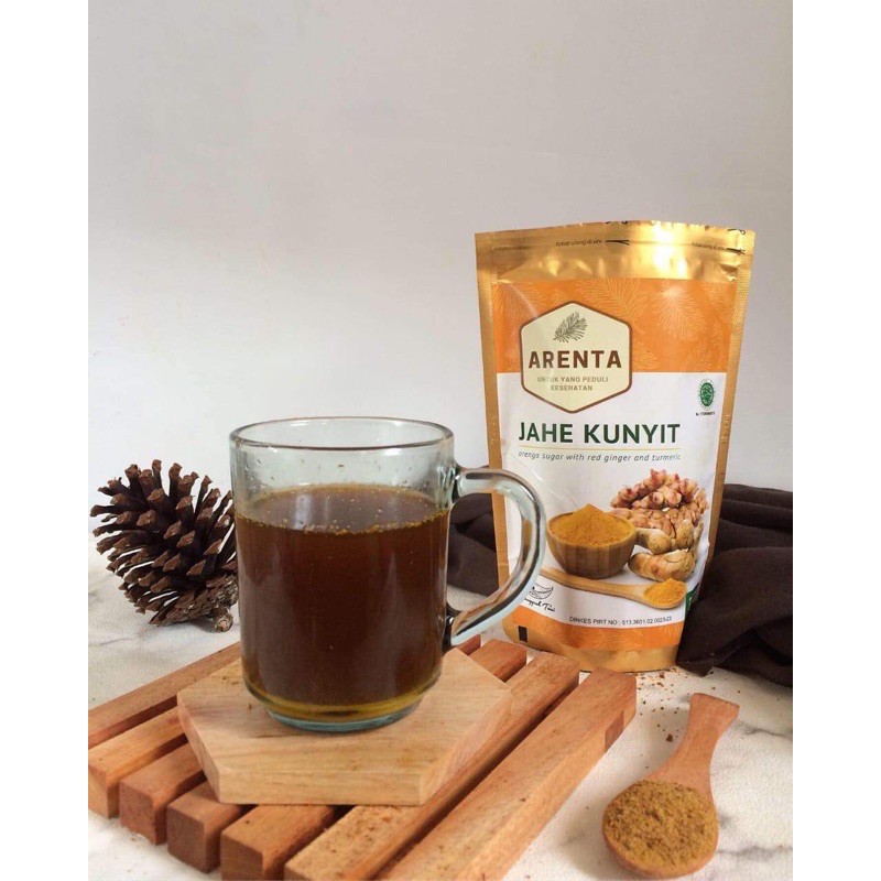 Jahe kunyit Arenta diproses secara alami secara tradisional, berkhasiat Melancarkan pencernaan, mengatasi perut kembung, kram, memperlancar haid. Mendetoks tubuh.