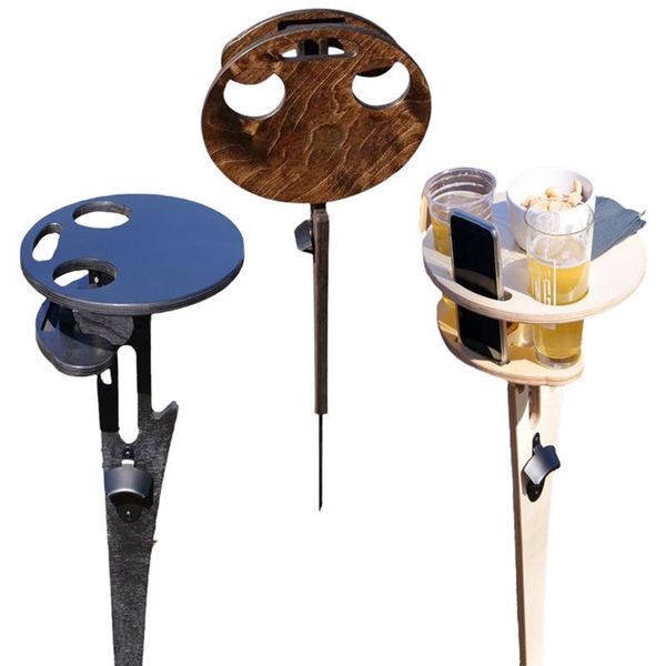 dropship 1/2 layer outdoor portable foldable wine table with round deskwooden easy to carry rack picnicparty travel tool camp furniture