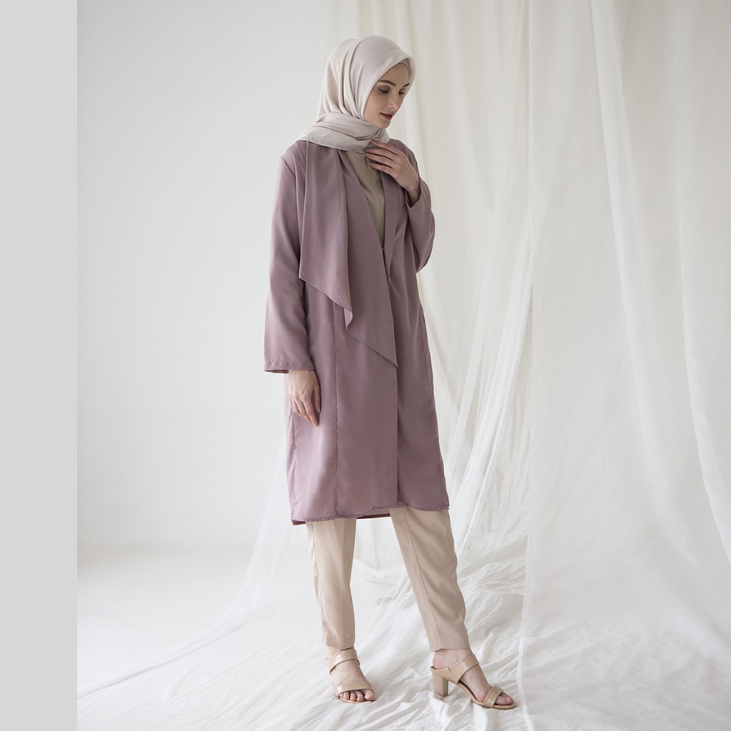 Outerwear dengan detail depan berbentuk asimetris.