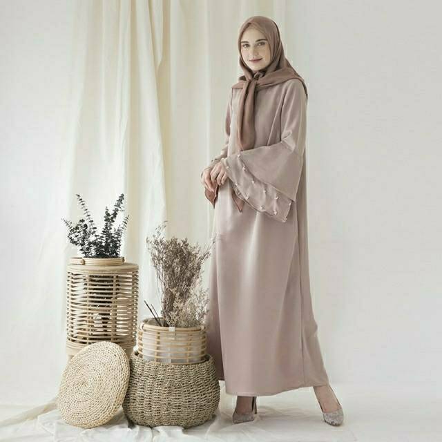 Gamis panjang, busui friendlyy dengan aksen pearl pada bagian tangan.