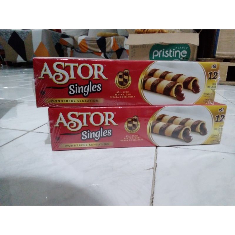 BOX Mayora Astor Single Wafer Stick Kemasan Single Isi 2 Stick Rasa Coklat - 12pcs x 18gr