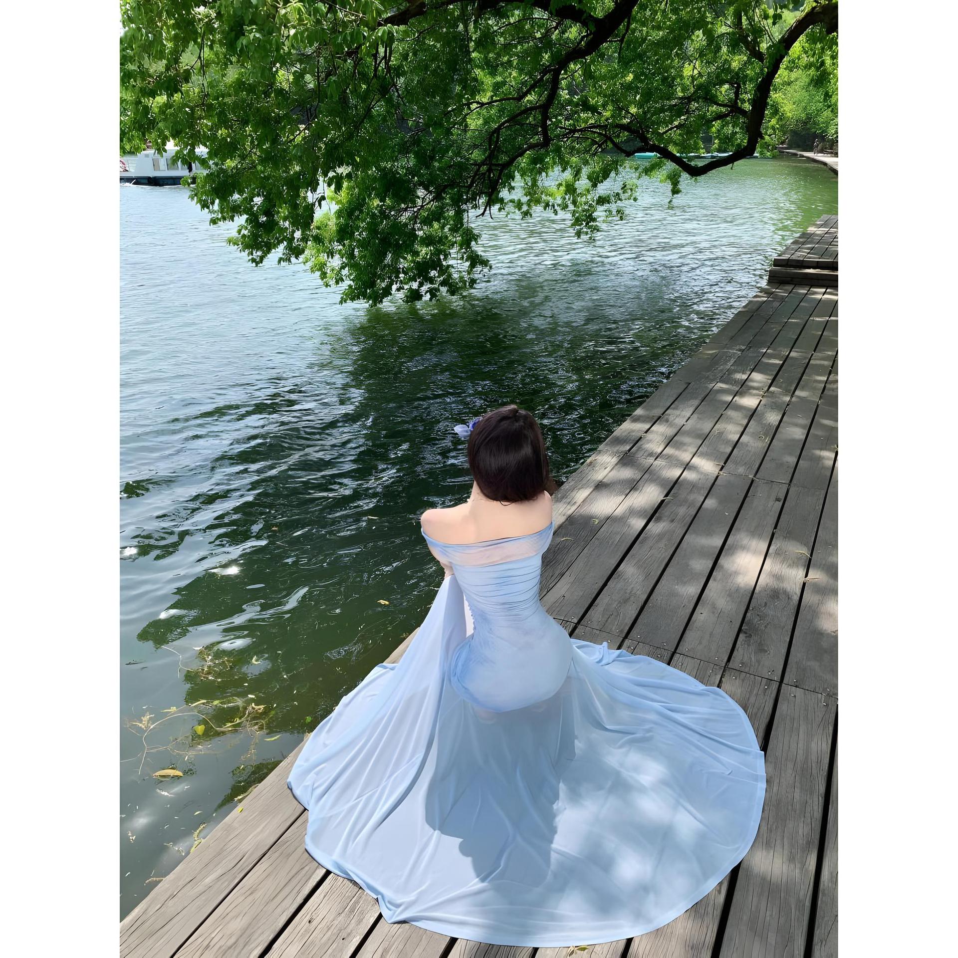 Atmosphere фиолетовое цветочное талия женское летнее новый стиль высококлассное изысканное красивое длинное платье с платьем женщины XL- (recommended 110-60kg)