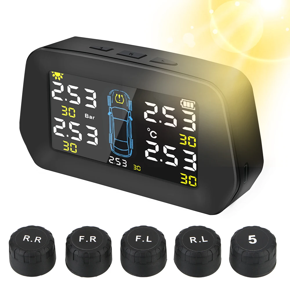 Auto Security Alarm Systems Kit Digital LCD Display Alarm Sensor Solar Power Car TPMS Solar Tire Pressure Monitoring