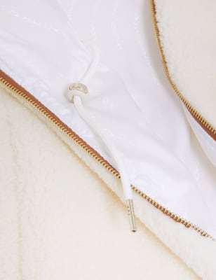 Stay stylishly snug in this cosy borg coat from our Autograph collection. Designed in a classic regular fit, it's complete with a warm hood and a full lining for ultimate comfort. A gold-tone zip and two slip pockets on the front offer a contemporary look. Made with responsibly sourced viscose and recycled polyester lining. n Autograph: premium investment pieces featuring contemporary cuts and refined finishing touches.