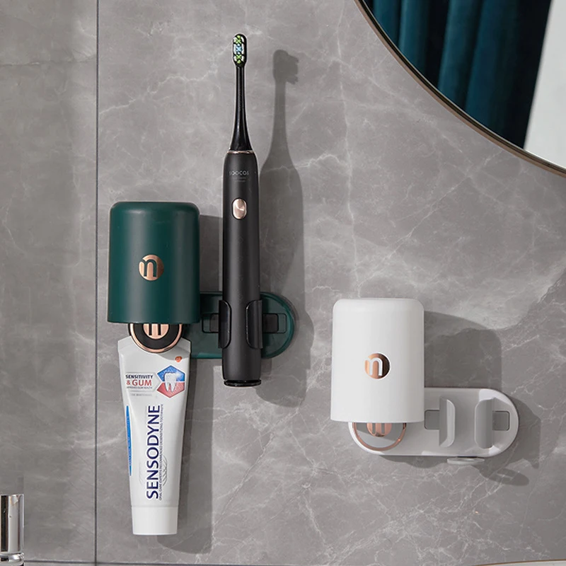 Automatic Electric Toothbrush Holder Set Wall-mounted Toothpaste Toothcup Holder Multifunction Auto Bathroom Storage Rack Tools