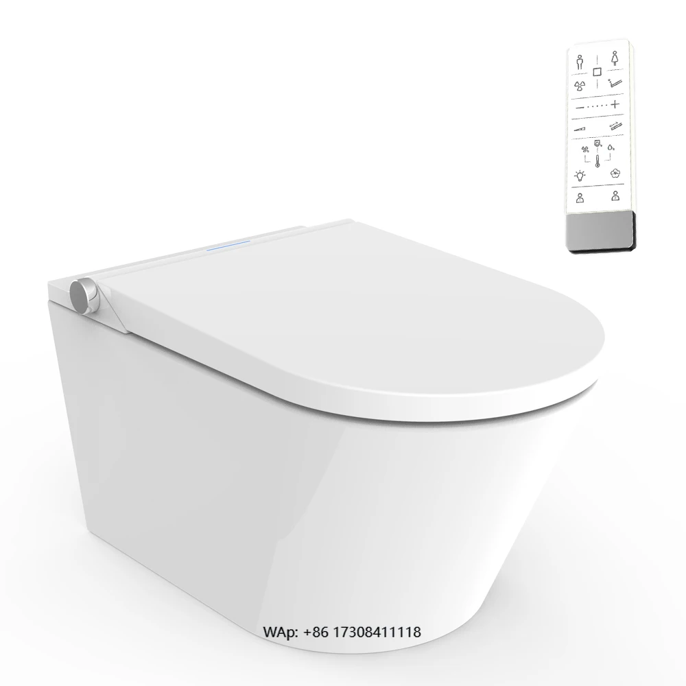 Automatic Rimless Ceramic One Piece Intelligent Bidet Wall Hung Smart Toilet With Remote Control