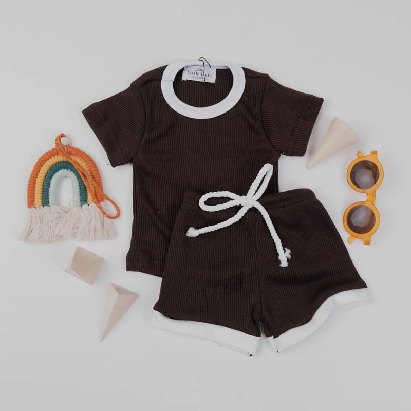 Setelan kaos dan celana pendek berbahan rib. Bahan rib ini bertekstur garis & stretcable, nyaman dan lembut untuk kulit anak. Bagian celana terdapat karet sehingga bisa diatur mengikuti bentuk anak ❤