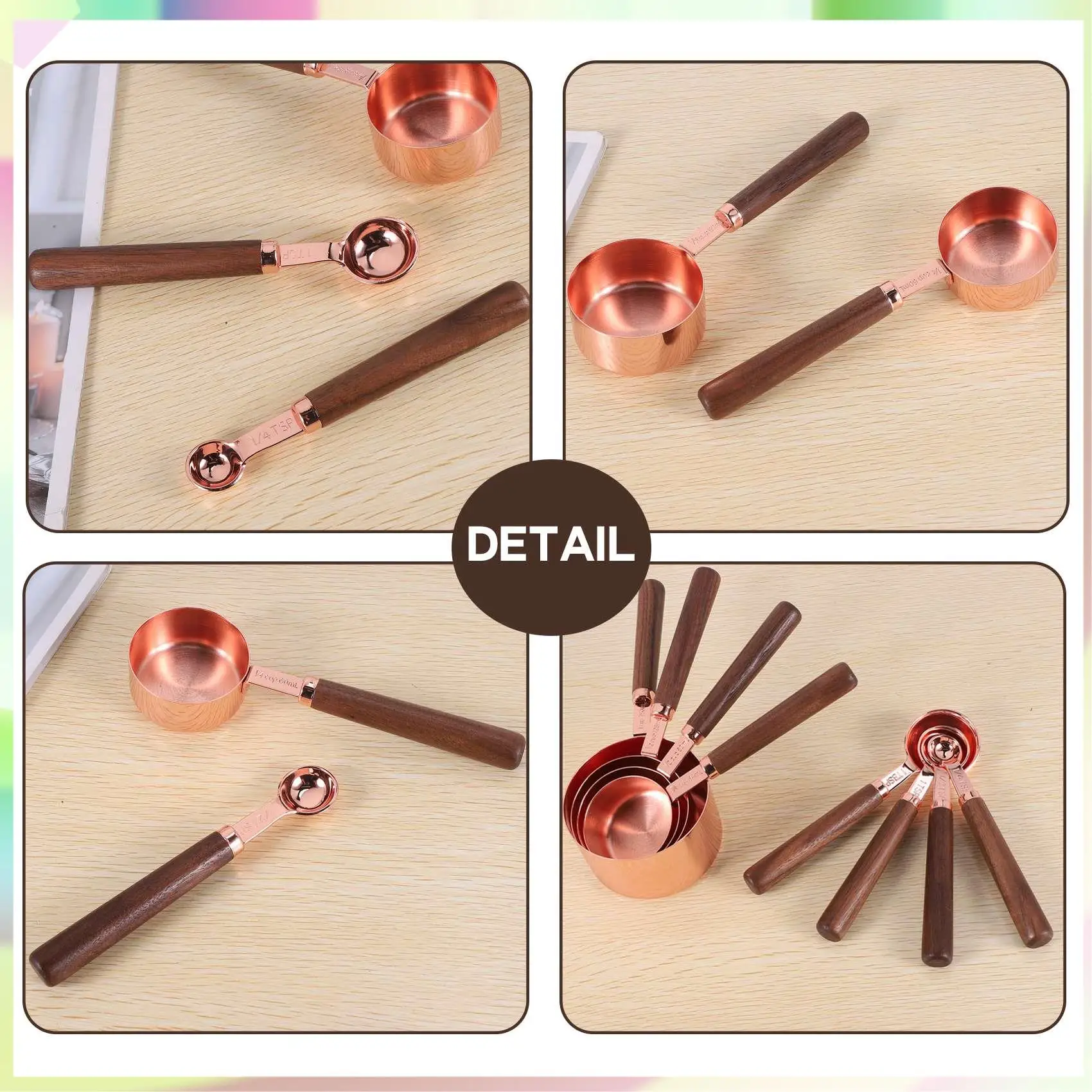 B23B мерные чашки, набор ложек, деревянная ручка, нержавеющая сталь, медь, металл, мерный совок, набор для выпечки, кухонные аксессуары