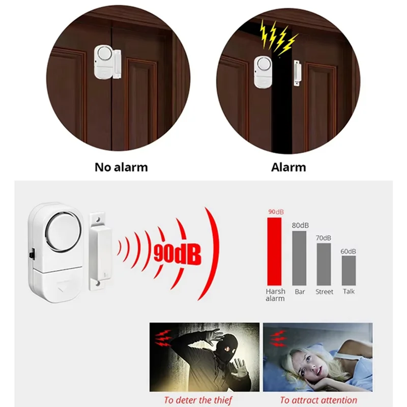 B47C 90 дБ Беспроводная охранная сигнализация Датчик двери, окна Независимое открытие Магнитный датчик двери Улучшенная домашняя безопасность 10 шт.