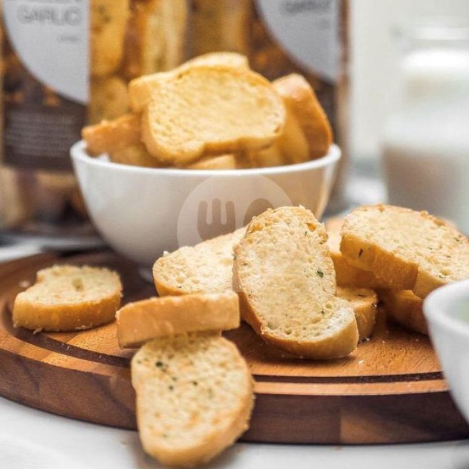 Bagelen kering topping garlic dengan rasa asin