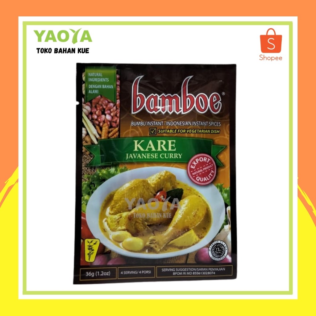 Bamboe Kare Bumbu Masak Instan [36 g] adalah bumbu kare instant yang diproduksi menggunakan pilihan bahan-bahan natural yang fresh dan berkualitas.