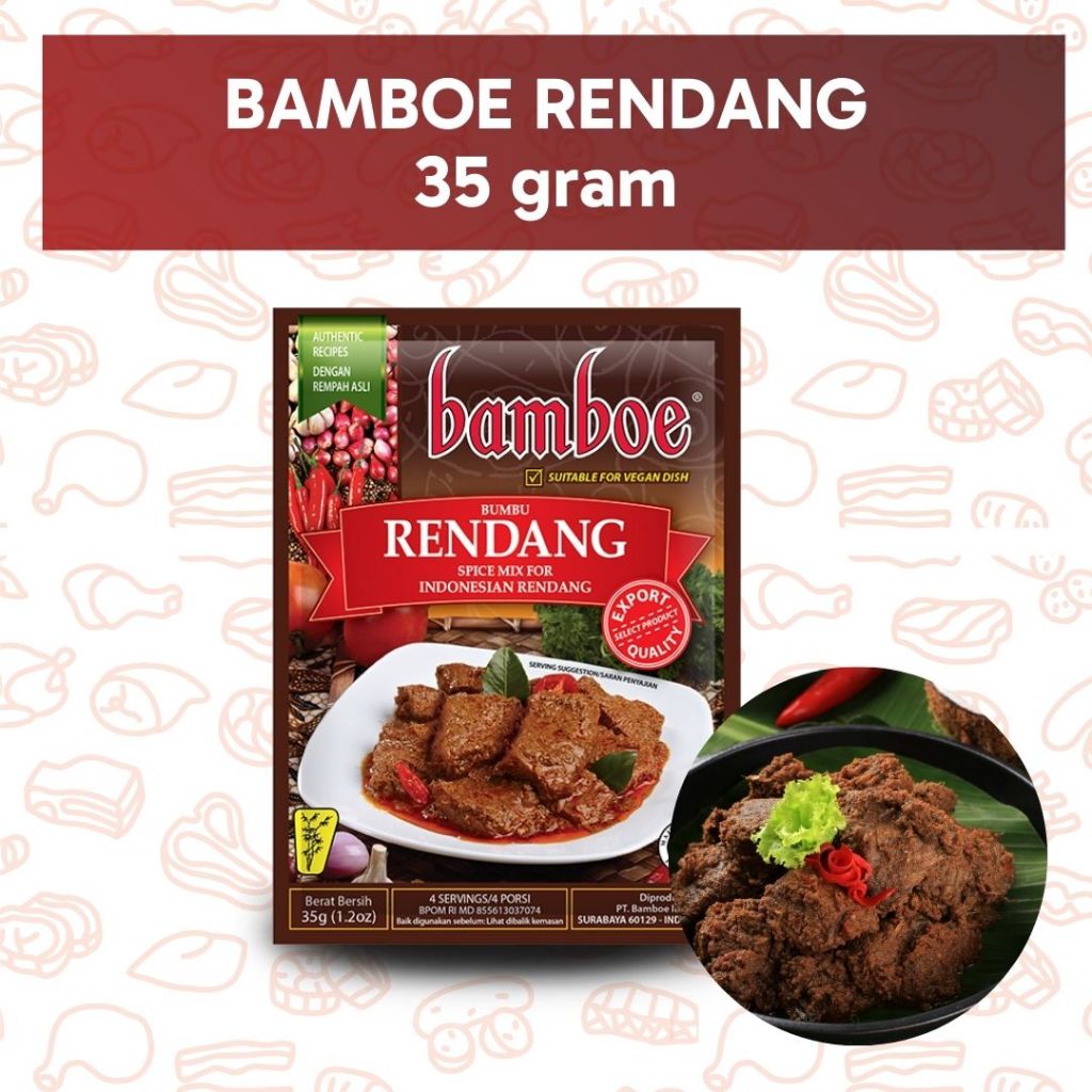 Bamboe Rendang adalah bumbu instan yang praktis untuk membantu memasak rendang. Bumbu ini diolah menggunakan bahan-bahan pilihan yang berkualitas untuk menghasilkan hidangan rendang yang lezat. Cocok untuk membuat rendang dari berbagai bahan daging, seperti sapi, kambing, bahkan ayam. 1 sachet bumbu instan ini memiliki berat 35 gram dan dapat digunakan untuk memasak 4 porsi makan.