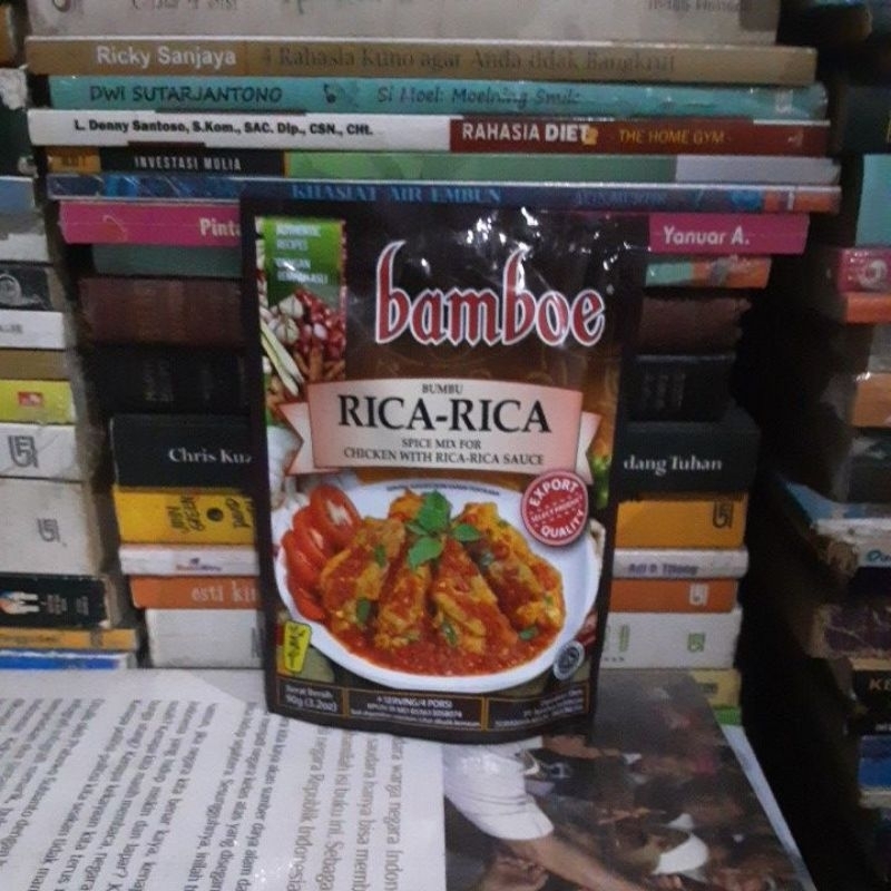 BAMBOE BUMBU RICA RICA 90 G,DIPRODUKSI OLEH PT BAMBOE INDONESIA SURABAYA 60129 INDONESIA,BPOM RI MD 855613058074.HARGA YANG TERTERA UNTUK 1 PCS,MENERIMA PESANAN DALAM JUMLAH BESAR.KADALUARSA 06/10/2025.