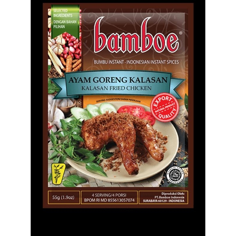 Bamboe Ayam Goreng Kalasan adalah bumbu instan yang mempermudah proses pembuatan ayam goreng Kalasan, hidangan khas Yogyakarta yang terkenal dengan rasa manis dan gurihnya.