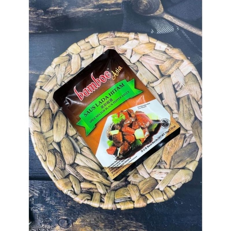 Bamboe Lada Hitam adalah resep bumbu lada hitam instan dalam kemasan praktis. Bumbu instan dari Bamboe ini diproduksi menggunakan pilihan bahan-bahan natural yang fresh dan berkualitas. Teksturnya bukan bubuk, melainkan kental yang membuatnya mudah tercampur dengan masakan.